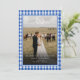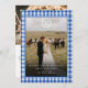 Elegant Rustic Blue Gingham Crest Monogram 2 Photo "Married & Bright" Card.