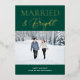 Married Bright Green Gold Script Modern Photo Christmas Script Real Foil Holiday Card. Send Holiday Greetings with photos to your loved ones with this festive and Modern Foil Holiday Card. All the texts are pre-arranged for you to personalise easily and quickly with your own details. Happy Holidays!