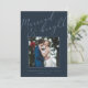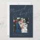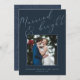 Elegant holiday photo cards for newlyweds feature a favourite square wedding photo on a rich midnight blue background, with "married & bright" in tonal calligraphy script. Personalise with your names or custom greeting beneath. Perfect for sharing a wedding photo for your first married Christmas.