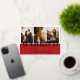 Married Christmas 3 Photo Collage Red White Foil Holiday Card