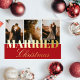 Elegant modern Christmas real gold foil holiday card featuring three photo collage and a Holiday greeting in gold on the red background: Married Christmas, in a mix of classic typography and chic elegant script. Perfect for couples who got married and celebrated their wedding this year! The reverse of the card contains your custom Christmas message with your last name and year in black on a crisp white background. Customise this unique minimalist template by clicking on the ´´Personalise´´ button.