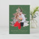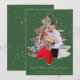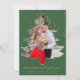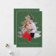 This elegant holiday card features your favourite photo in a Christmas tree frame outlined in gold glitter. Background is green with gold snowflakes. Customisable text "Married Christmas & Happy New Year!" and your family name underneath.