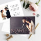 This modern and elegant wedding photo announcement card features "Married" in unique faux rose gold foil serif type over your full bleed wedding photo. The back of the card includes a second photo in a vertical format and simple text that can be personalised with your wedding day details and well wishes, signed with your new married name. Note, the black and white colours can be modified.