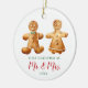 Married Gingerbread Couple Personalised Christmas Ceramic Ornament. Personalise with your custom information on both front and back.