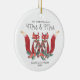 Married Lesbian Couple Personalised Festive Foxes Ceramic Ornament. Personalise with your custom information on both front and back.
