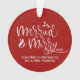 This elegant round red acrylic ornament features a festive white script design on both sides, reading “Married & Merry” with space to add your wedding year and names. It’s the perfect way to commemorate your first Christmas as Mr. & Mrs. and add a romantic touch to your holiday tree.