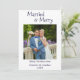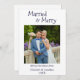 This minimalist navy blue married and merry newlywed photo card is the perfect simple holiday greeting for a newlywed couple. The design features classic dark blue typography. Photo template via Pixabay licensed under CC0 and must be replaced with your own photo