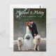 Married & Merry Wedding Photo Christmas Postcard Long - White Script