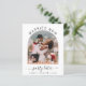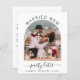 Budget-friendly elopement or smaller wedding announcement to inform family and friends that your wedding plans changed and you eloped or reduced the number of guests at your wedding to a small intimate group, and that you will host a celebration party in the future. The front features your photo in an arched frame and "Married Now, Party Later" in a mix of modern typography and trendy script. Under your photo you can add your first names and wedding date. On the reverse you can personalise your message in more detail and add your names in a signature-like script.