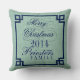 Marry Christmas Blue Text Sage-Green Linen Texture Cushion