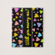 This cheerful, fun and loving puzzle design features a pattern of heart shapes of various sizes and coloured a variety of colours. It also features the marriage proposal question "Will you marry me?" on the front in yellow script-like text. A puzzle like this could be a fun way to deliver a marriage proposal to somebody special.