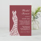 A delicate lacy wedding dress accents this bridal shower invitation, on a trendy marsala background. It is shown on the basic paper; however, I recommend the weight and texture of the linen paper.