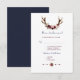Marsala Floral Antlers Navy Blue Fall Wedding RSVP Card