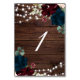 Marsala & Navy Flowers Rustic Wood Table 1 Wedding Number