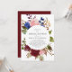 A lovely rustic bridal shower invitation featuring text in a white circle surrounded by a watercolor floral bouquet in shades of marsala or burgundy, navy blue, and pink. The reverse side is a matching shade of marsala.
