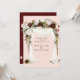 Design features a printed coloured floral element in shades of marsala and blush pink overlaying a light pink kraft paper textures with white canopy top and calligraphy script or type writing. Great for your wedding celebrations!