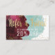This modern, elegant, and chic marsala red and washed out teal artsy watercolor with faux printed gold splashes refer a friend discount referral card is perfect for the trendy and stylish business owner. This fashionable and professional looking card is the perfect way to show your customers you care about their business. Customise this card for any business, just edit the text and add your own personal details.