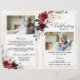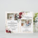 Funeral memorial program featuring on the front a photo of the deceased, thier name, dates, the memorial venue, date of the event, and elegant gold frame with watercolor marsala and blush roses. On the inside is an obituary, and order of service; and on the back another photo, a thank you note and the second venue for after the funeral.