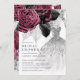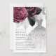 Beautiful marsala & silver floral bridal shower invitation with a glamourous wedding dress. Flip our wedding shower invite over to view a coordinating floral back for an extra special touch