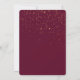 A double oval gold frame is decorated with marsala red and pink roses and leaves at the bottom of this pretty wedding invitation. Your custom text is in grey green, gold, and matching red in the centre. The top third also has a sparkling gold confetti spray. The images and text are placed on an elegant white background. The back of the invitation is matching deep red, with the same confetti overlay. Beautiful, modern, and chic! The colours in this invitation are appropriate for every season. *Thanks to LABF Creations for the floral images in this design.