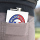 The flask itself is fine. It’s a cheap flask, obviously bought in bulk, however am prepared to overlook that. Given that it is a personalized item, I would have liked to have seen gift boxing instead of the generic packaging. Terrible printing, and/or quality. It’s a cheap, tacky vinyl. It is not cut straight and is also applied in a way that it is overhanging the bottom, causing the glue to catch on items and it will eventually roll and tear, damaging the wrap.