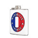 The flask itself is fine. It’s a cheap flask, obviously bought in bulk, however am prepared to overlook that. Given that it is a personalized item, I would have liked to have seen gift boxing instead of the generic packaging. Terrible printing, and/or quality. It’s a cheap, tacky vinyl. It is not cut straight and is also applied in a way that it is overhanging the bottom, causing the glue to catch on items and it will eventually roll and tear, damaging the wrap.