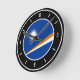 Marshall Islands Flag Elegant Round Clock with the Marshall Islands flag positioned in the middle and lovely white clock numbers on the clock edge. Delightful black background with the white oval elements finalise the design putting emphasis on the elegance. Beautiful combination of black and white with the skilful integration of the national flag colours make this clock the perfect gift and the great show piece on the wall. © 2022 CountriesOfTheWorld