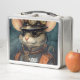 This is a standard metal lunchbox that appears to work just fine. We designed this box ourselves with an uploaded photo and custom text on the front and back. It looks absolutely beautiful except the front of the lunchbox is not centered like it shows in the photo. The print borders don't align with the inset flat part of the box where the preview photo online showed it perfectly centered in there. The back looks nice and centered though.