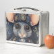 This is a standard metal lunchbox that appears to work just fine. We designed this box ourselves with an uploaded photo and custom text on the front and back. It looks absolutely beautiful except the front of the lunchbox is not centered like it shows in the photo. The print borders don't align with the inset flat part of the box where the preview photo online showed it perfectly centered in there. The back looks nice and centered though.