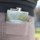 The flask itself is fine. It’s a cheap flask, obviously bought in bulk, however am prepared to overlook that. Given that it is a personalized item, I would have liked to have seen gift boxing instead of the generic packaging. Terrible printing, and/or quality. It’s a cheap, tacky vinyl. It is not cut straight and is also applied in a way that it is overhanging the bottom, causing the glue to catch on items and it will eventually roll and tear, damaging the wrap.