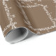 White marshmallows made with the word marshmallow on chocolate, cocoa coloured wrapping paper. Hot chocolate with marshmallows on wrapping paper.