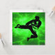 Karate party invitations feature our Martial Arts Lightning design. This is the male version with a green background. We also have other colours and a female design, too.
