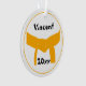 Customise the unique Martial Arts Orange Belt Round Acrylic Ornament with the name of your martial artist and current year. Create a custom martial arts congratulations gift to commemorate an orange belt test. This one of a kind personalised martial arts sports ornament features a digitally enhanced photograph of a martial arts orange belt tied in a knot with a white background.