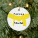 Customise the unique Martial Arts Proud to be a Yellow Belt Round Ornament with the name of your martial artist and year of their belt rank promotion test or exam. This one of a kind martial arts sports ornament features a digitally enhanced photograph of a martial arts belt tied in a knot with a white background.