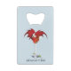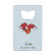 A cute red dragon is snuggling up to a green olive in a martini glass