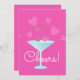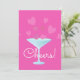 Martini Glass and Pink Hearts bursting out of the glass. Hot pink background.