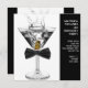 Man's martini birthday party invitation. This black bow tie and martini birthday party invitation works great for a mans any number birthday party, retirement, corporate black tie event, martini party or bachelor party. Add your details to the front and/or back of this elegant black bow tie and martini birthday party invitation by adding your event details, font style, font size & colour, and wording.