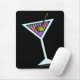 A brightly coloured martini glass filled with a wavy rainbow of cocktail fun and garnished with the classic cocktail olive on a martini pick. Perfect for any party or happy hour celebration.