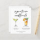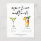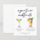This chic signature cocktails menu paper sheet features simple black typography above 2 drinks and their ingredients for your wedding bar. A cute Martini and Piña Colada drawing add a cool flair to your bar menu. Complete with the couple's names and date for their reception.