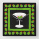 Martini Retro Drink Green Olives on Black Square Wall Clock