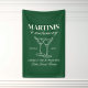 This design features trendy bold text with hand drawn cocktails and a green martini theme.