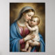 This stunning religious oil painting depicts the Virgin Mary lovingly cradling baby Jesus in a tender maternal embrace. Mary wears traditional blue and rose-colored robes with gold trim and a soft gray veil, while the cherubic infant Jesus reaches up to touch her face. Both sacred figures are surrounded by luminous golden halos that glow against the warm, ethereal background, creating a peaceful and devotional atmosphere perfect for home or church display.