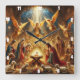 This exquisite square wall clock portrays a classic nativity scene with Mary and Joseph tenderly adoring baby Jesus in a manger, bathed in divine light. Golden-winged angels hover above, while lambs gently rest nearby, creating a warm, spiritual Christmas tableau of the Holy Family's blessed night.