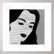 Flat graphic image of a woman in black ,white and grey. Look for others of the same image to make a grouping for stronge impact. Also a coordinating pillow for your couch!