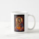 Vintage image of Mary holding baby Jesus in her arms. Eastern Catholic church icon.