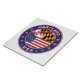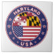 Badge of Maryland with flag of Maryland and flag of USA colours, rounded shape.