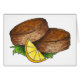 Greeting card features an original marker illustration of a pair of Maryland crab cakes with a wedge of lemon.