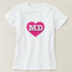 This t-shirt features a vibrant hot pink heart containing the bold, white, upper case letters MD, the official abbreviation for Maryland, the old line state.
