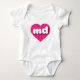This baby romper features a vibrant hot pink heart containing the bold, rounded, white lower case letters md, a playful version of the abbreviation for Maryland, the old line state.,