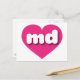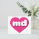 This postcard features a vibrant hot pink heart containing the bold, rounded, white lower case letters md, a playful version of the abbreviation for Maryland, the old line state.